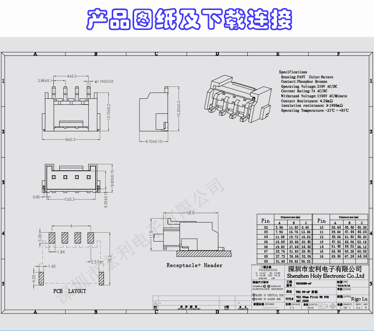 4.所用材料:環保PA66,LCP等,端子一律為磷青銅