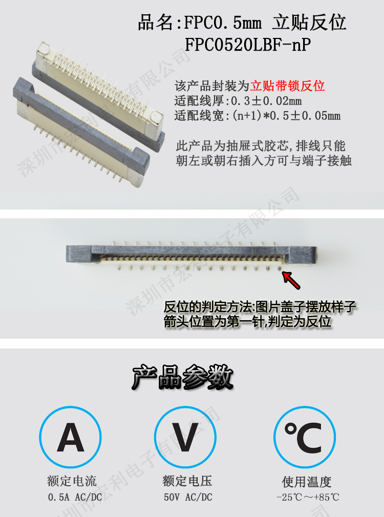 我司主要生產家電連接器,SMT貼片FPC連接器,產品規格從0.3mm、 0.5mm 、1.0mm 、1.25mm、 1.5mm 、2.0MM、2.5mm間距連接器,(FPC排插),板對板 0.5mm 、0.8mm 間距連接器,共四十余種產品,上千種孔位,產品質量無飛邊,無毛刺,全部新料注塑,符合歐盟環保,孔位齊全,尺寸穩定,容易搭配,產品價格合理,如貴司有需要,可以隨時聯系我們,真誠希望能和貴司有合作的機會,http://rigolu.cn.alibaba.com進入公司網址,點擊左側間距目錄可快速精確尋找貴司需要的產品。