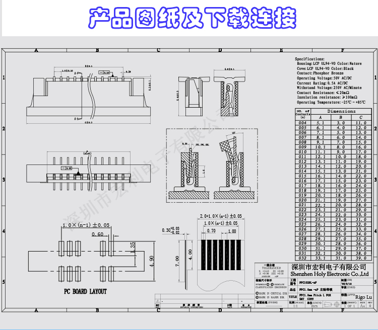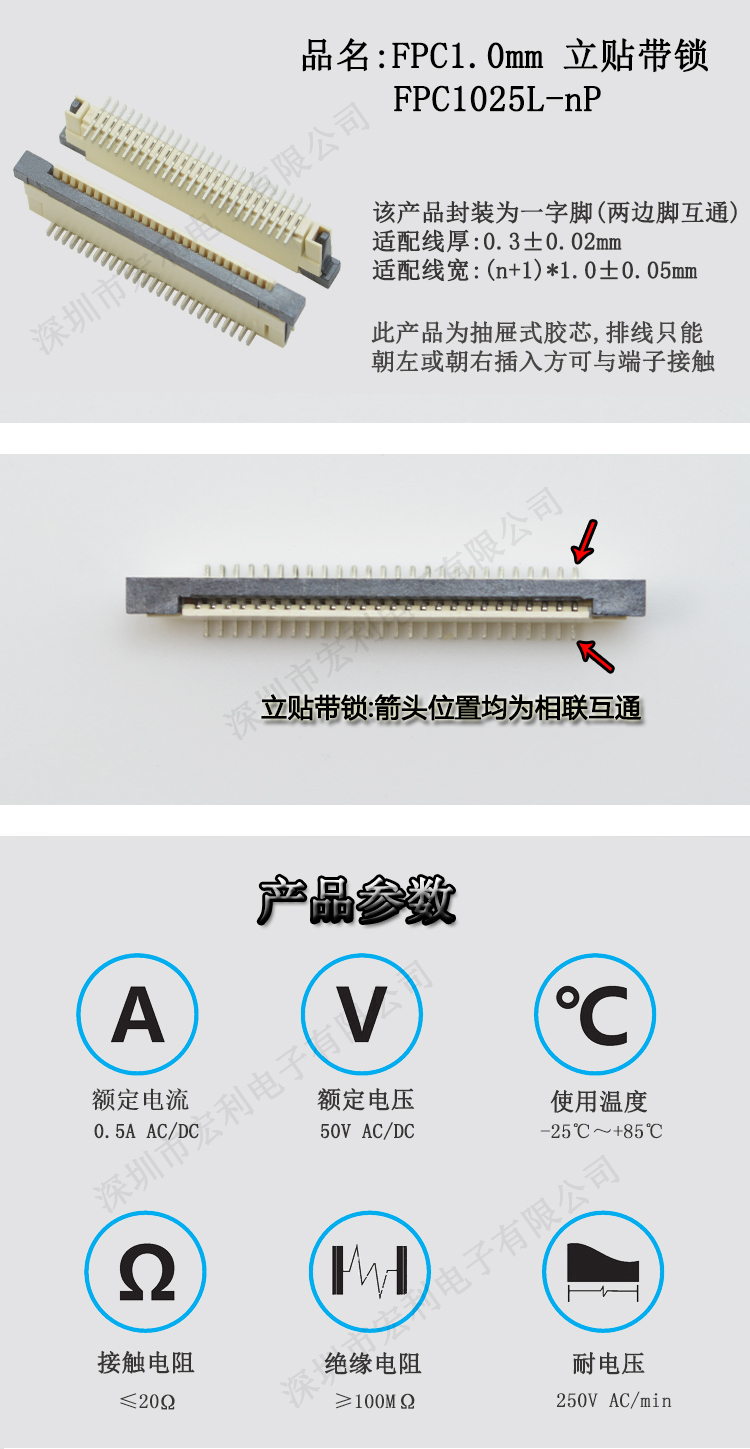 我司主要生產家電連接器,SMT貼片FPC連接器,產品規格從0.3mm、 0.5mm 、1.0mm 、1.25mm、 1.5mm 、2.0MM、2.5mm間距連接器,(FPC排插),板對板 0.5mm 、0.8mm 間距連接器,共四十余種產品,上千種孔位,產品質量無飛邊,無毛刺,全部新料注塑,符合歐盟環保,孔位齊全,尺寸穩定,容易搭配,產品價格合理,如貴司有需要,可以隨時聯系我們,真誠希望能和貴司有合作的機會,http://rigolu.cn.alibaba.com進入公司網址,點擊左側間距目錄可快速精確尋找貴司需要的產品。